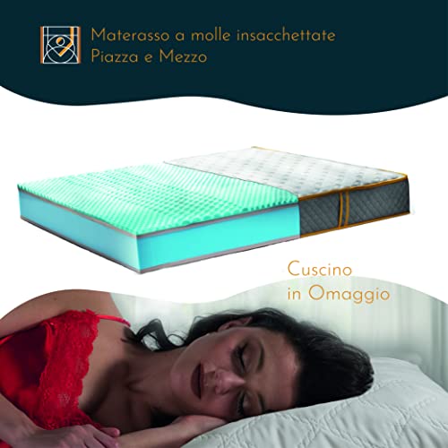 Comfy Line - Materasso Piazza e Mezzo a Molle Insacchettate e Memory Foam 120x195 h 23 cm Francese. 1200 Molle Indipendenti. Rivestimento Sfoderabile Cotone Fresco e Traspirante. Made in Italy 100%