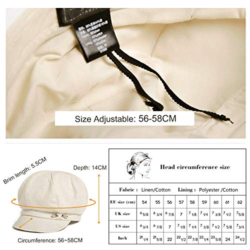 Comhats Berretto da donna con visiera da barbiere, cappello da donna Cabbie Maler cappello Backerboy alla moda 91565_Lino Beige M