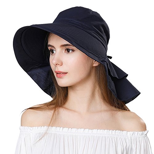 Comhats - Cappello da sole pieghevole UPF 50 + con cordino sulla nuca, da donna, in cotone, 69085_nero., L