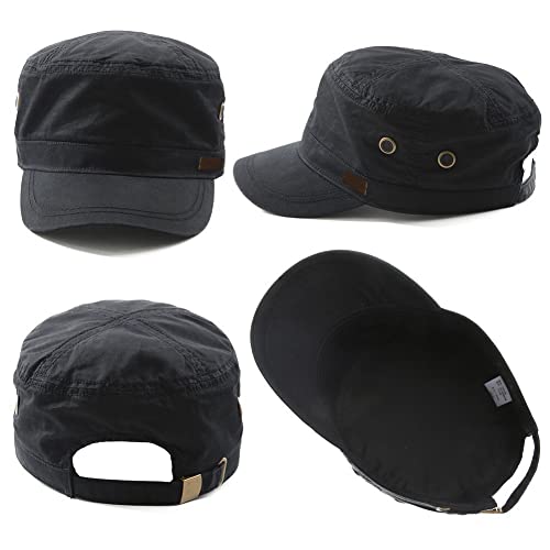 Comhats Unisex Mens cotone Army Caps Cappelli militari Baseball Sun Hat Trucker Cadet Combat Cap per gli uomini 61-63 CM Nero