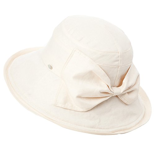 Comhats UPF50+ - Cappello estivo da donna, 100% lino, pieghevole, pieghevole, con fascia larga, colore: beige