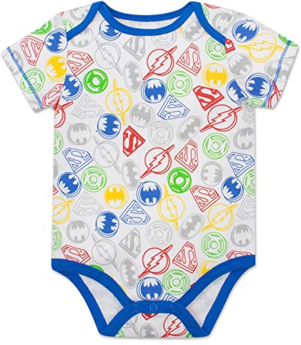 DC Comics Body Bimbo Divertenti Justice League: Superman, The Flash e Lanterna Verde (Pacco da 5), Multi 6-9 Mesi