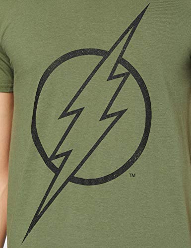 Dc comics Flash Line Logo T-Camicia, Verde Militare, XL Uomo