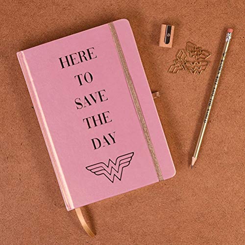Cuaderno rosado con un diseño de oro de la Mujer Maravilla