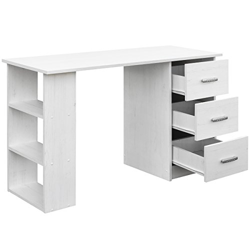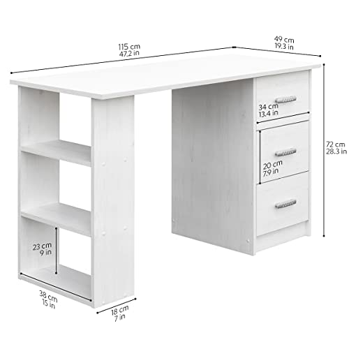 COMIFORT Scrivania - Tavolo da Studio Robusto e Spazioso, Stile Moderno e Minimalista, Eccellente Capienza, 3 Ripiani e 3 Cassetti, Colore Nordic
