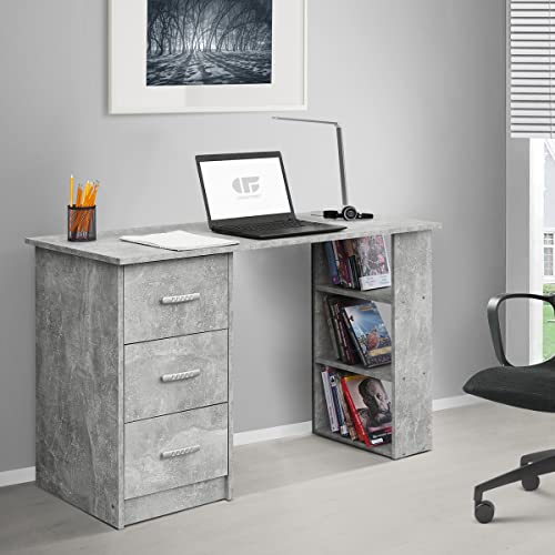 COMIFORT Scrivania - Tavolo da Studio Robusto e Spazioso, Stile Moderno e Minimalista, Eccellente Capienza, 3 Ripiani e 3 Cassetti, Colore Stone
