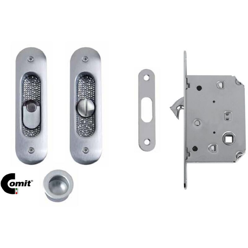 Maniglia da incasso per porte scorrevoli marca COMIT, Caratteristiche tecniche: -Materiale: Ottone -Dimensioni esterne della maniglia: mm.150x39 -Misura fresata del foro con diametro di mm. 23x81 -Maniglia con pendaglio/bottone Finiture disponibili: -2B/SB1- Cromo Satinato+Cristalli -2A/SB1- Cromo Lucido+ Cristalli -1C/SB1- Ottone Lucido Verniciato+ Cristalli La confezione comprende: - Coppia di maniglie - Nottolino di trascinamento con un diametro di mm. 25 -Serratura a gancio Perché scegliere Comit? Nata nel cuore industriale d'Italia, dove da più di cent'anni crescono e si sviluppano piccoli artigiani e grandi industrie, fondata sull'operosità della gente e sulla capacità produttiva e di specializzazione delle officine che la circondano, Comit Srl ha iniziato, quasi vent'anni fa, la propria attività, sfruttando la passione per il lavoro e la tenacia dei suoi fondatori, nonché la sua posizione strategica. Comit soddisfa ogni gusto e ogni tipo di mercato Comit Srl è in grado di