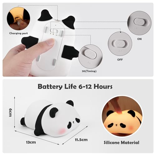 Comius Sharp Panda Luce Notturna Bambini, Adorabile Lampada Notturna Per Bambini, Lampada Da Comodino In Morbido Silicone Con Sensore Tattile, Regalo Di Compleanno Per La Stanza E La Scrivania