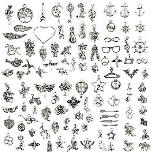 Comius Sharp 100 Pezzi Ciondoli per Creazione di Gioielli Misti Stili retrò Argento Ciondolo Charm per Gioielli Fai da Te per Bracciale Collana Orecchini Portachiavi Gioielli Creazione di Gioielli