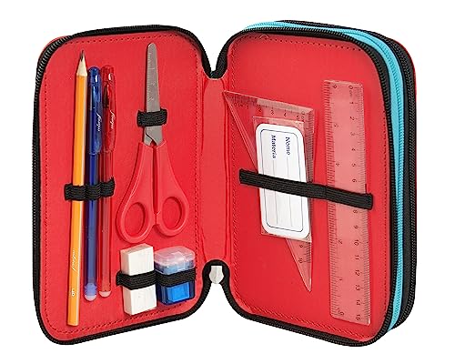 AMPIO, COMODO E VERSATILE: La fantasia personalizzata e i colori rendono questo astuccio unico e originale, perfetto per gli amanti della serie. L'astuccio contiene all'interno 18 pennarelli, 18 matite colorate, matita, gomma, righello, temperino, forbici con punta arrotondata, goniometro, squadra, evidenziatore, penna rossa e penna cancellabile Frixion blu. Prodotto completo ideale per la cancelleria di bambine e bambini