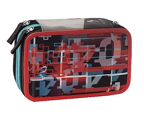 Comix FLASH - Astuccio 3 Scomparti Bambina e Bambino con Cancelleria Scuola Integrata e Vani Portapenne + Penna Cancellabile Frixion - Astuccio Scuola Organizer Grande, Rosso/Nero - 20x12Hx7