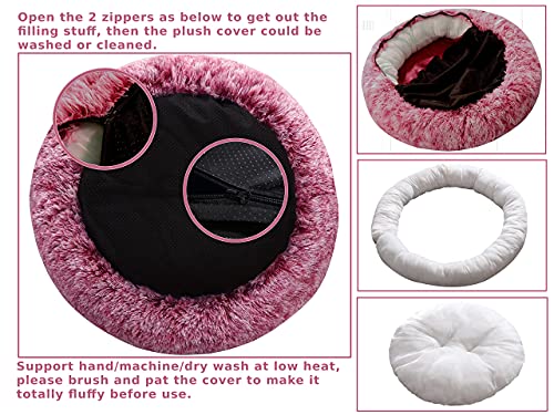 La cuccia per cani a ciambella ha il rivestimento rimovibile per il lavaggio. Aprire le 2 cerniere nella parte inferiore della cuccia e estrarre l'imbottitura, quindi il rivestimento in peluche potrebbe essere lavato o pulito. Supporta la mano / lavatrice / lavaggio a secco a bassa temperatura, si prega di spazzolare e tamponare il rivestimento per renderlo completamente soffice prima dell'uso.