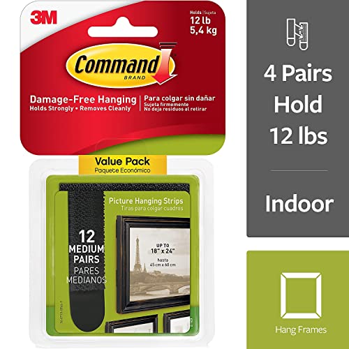 Command Medium Picture-Hanging Strips 12-Picture, Black