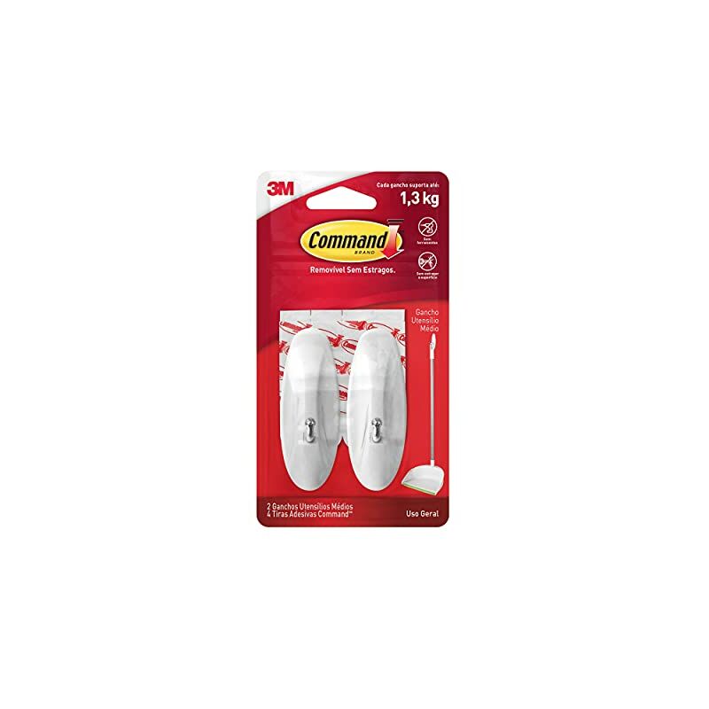 Command, 1.197 x 3.153 x 1.457, Medium Wire Hooks With Strips, Mounting Solution That Holds Firmly & Removes Cleanly, Command, Wire Hooks Are A No Surface Damage Option To Organize Handled Products Such As Brooms & Mops, Each Hook Holds Up To 3 LB.