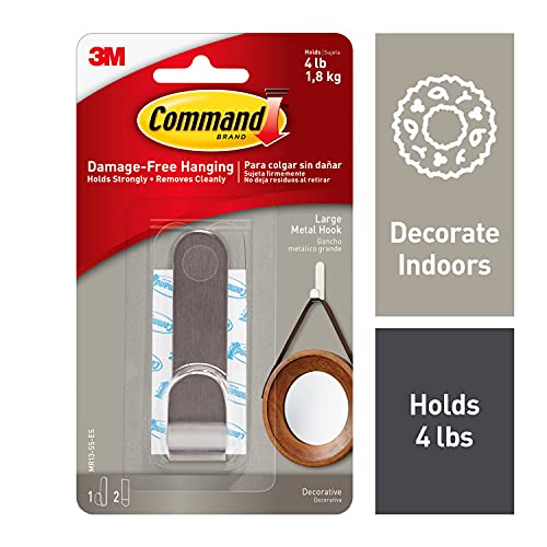 Command MR12-SS-ES Moderno gancio in metallo con 1 gancio / 2 strisce, misura media, argento, MR13-SS-ES