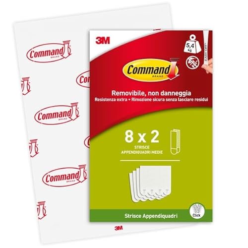 Command Strisce Appendi Quadri Adesive Medie Bianche, Confezione da 8 Coppie di Strisce - ottimale per Appendere Quadri, Cornici e Specchi al Muro senza Chiodi