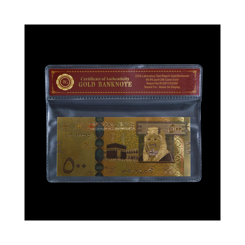 Commercio all'ingrosso Fuienko Colorato Arabia Saudita 500 Riyal Lamina D'oro Delle Banconote di Plastica COA Cornice di Denaro Falso Fatture Banconote