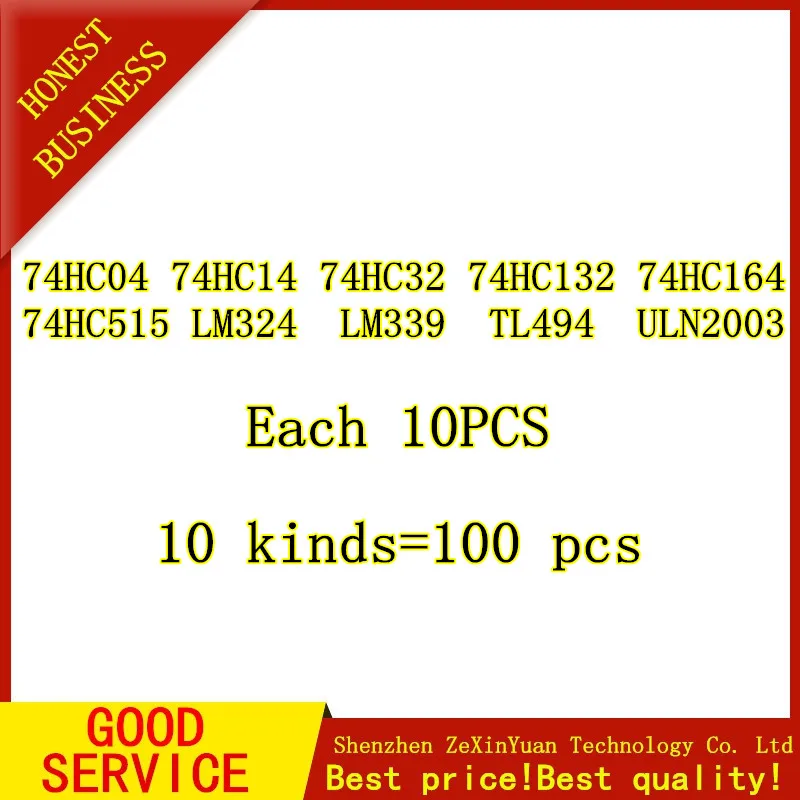 In common use SMD IC 74HC04D 74HC14D 74HC595D 74HC164 LM324 74HC132 74HC32 LM339 TL494 ULN2003 sop14 10 kinds=100 pcs