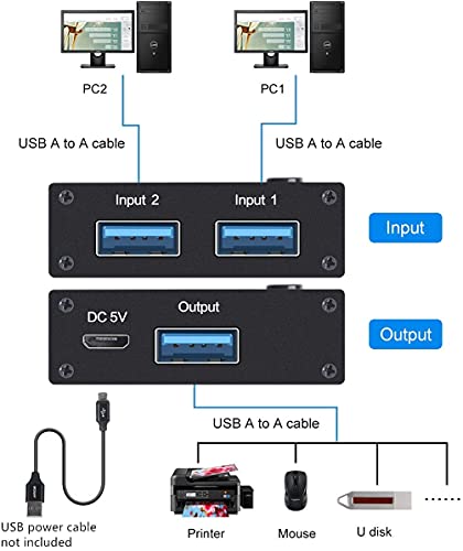 USB 3.0 Commutatore, 2 ingressi 1 uscita USB 3.0 Switch per 2 Computer Condividono i Dispositivi USB per Mouse, Tastiera, Scanner, Stampante, Chiavetta