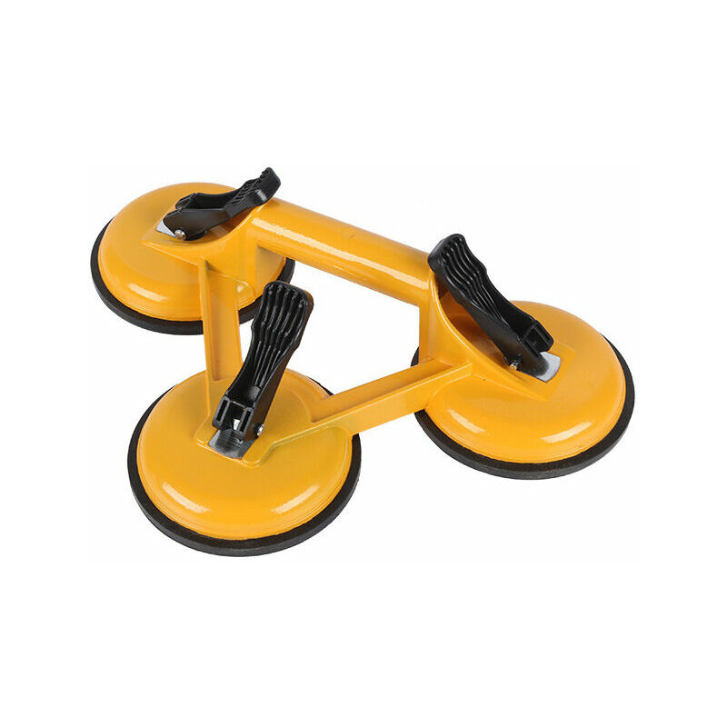 STRUMENTO DI TRASPORTO MULTIFUNZIONALE - La ventosa per vetro funge da ausilio per il sollevamento di vetri (finestre, piani di tavoli in vetro, specchi), piastrelle e altri oggetti lisci e ingombranti. FACILE DA UTILIZZARE - Semplicemente creare il vuoto ruotando le leve. L'oggetto può quindi essere sollevato dalle maniglie e trasportato in sicurezza da un luogo all'altro. TRIPLA VENTOSA - con tre speciali ventose in gomma (ventosa Ø: 123 mm) e una robusta valigetta in alluminio con manico. ROBUSTO - Le ventose in gomma sono delicate, delicate sui materiali e si adattano perfettamente.