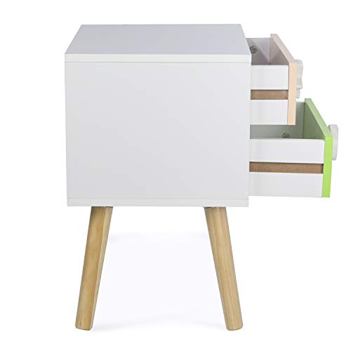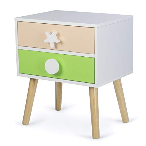 Comodino per bambini, comodino con 2 cassetti, colore: bianco
