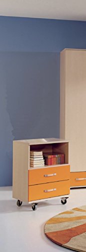 Comodino cassettiera per bambini con ruote 55 x 78 cm, colore: faggio con Arancione Tavolo Bambini