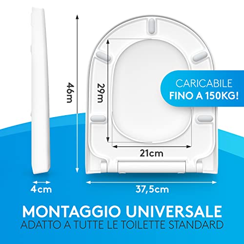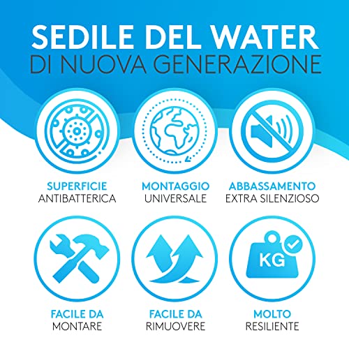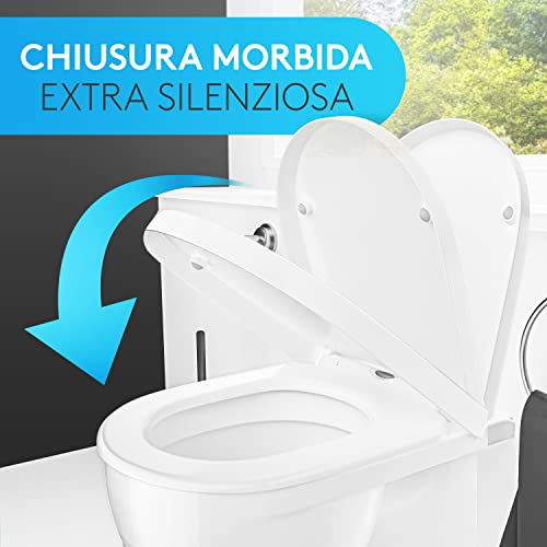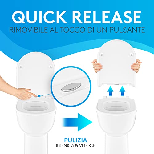 Comodo Copriwater con abbassamento automatico Quick Release - Copriwater antibatterico a forma di D - Sedile WC universale in Duroplast - Occhialini per WC con accessori di montaggio