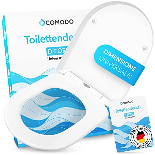 Comodo Coperchio della toilette con meccanismo di chiusura morbida - Sedile igienico antibatterico a forma di D - Sedile WC universale in Duroplast - Con accessori di montaggio