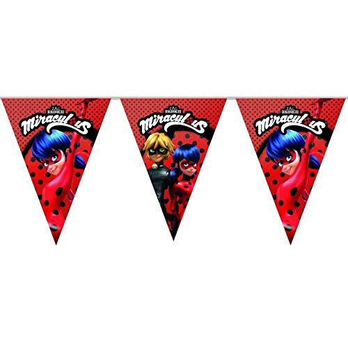 Comogiochi- Festone Bandierine Triangolari Miraculous-Lady Bug, Multicolore, 5CG82057