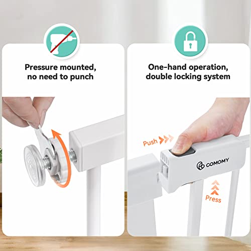 COMOMY 91,5cm Cancelletto per cani Extra Alto, per Scale e Porte, 75 a 124cm di Larghezza, Montato a Pressione Cancellino Bambini di Sicurezza Extra Largo a Chiusura Automatica per Casa, Bianco