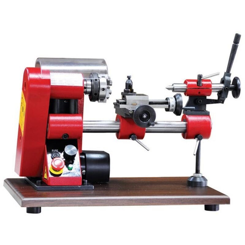 Descrizione TORNIO PER MATERIALI FERROSI TRASFORMABILE CON APPOSITO KIT IN TRAPANO A COLONNA E FRESA Solo con alcuni piccoli passaggi per la trasformazione con l'apposito KIT20115, ottimo per utilizzatori al primo livello Modello in configurazione MINI-TORNIO TRANSFORMERS - EAN 8032770666218 Dati tecnici / Dati tecnici Ø max.: 100 mm Distanza contropunte / max. tailstock size: 100 mm Ø foro albero / shaft hole diameter: 8 mm Corsa slitta / Ram stroke: 40 mm Velocità di rotazione g/min / Rotation speed r.p.m.: 100-4500 ÷10% Potenza in uscita / Output power: 150 W Ingombri macchina / Overall size: 360x250x230 mm Dimensioni imballo / Package box size: 410x310x290 mm Peso netto-lordo / Net - Gross Weight: 9.2 / 10.3 kg Dotazione Standard / Standard Equipment: Mandrino a 3 ganasce / 3 jaw chuck: 50mm. Set di chiavi / Set of tools Dati tecnici / Dati tecnici Capacità foratura / Drilling capacity: 6 mm Spostamento tavola / Working table travel: 70 mm Potenza in uscita / Output power: 150 W