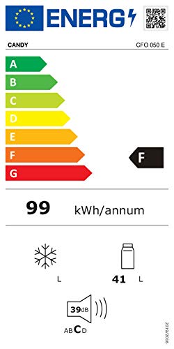 RISPARMIO: conforme alla nuova etichetta energetica, il frigo da tavolo Candy è in classe F e permette di ridurre i consumi fino al 20% rispetto a uno in classe G