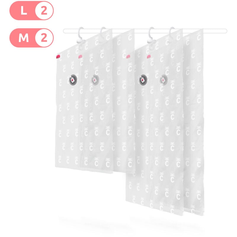 Compactor I sacchetti sottovuoto da appendere sono classici sacchetti sottovuoto piatti salvaspazio progettati per essere appesi in un armadio o su un'asta appendiabiti. Perfetti anche per i viaggi, questi sacchetti per vestiti hanno una valvola brevettata e di non ritorno che garantisce che l'aria non rientri quando l'ugello del vuoto viene rimosso. Sono ideali per risparmiare fino all'80% di spazio negli armadi per riporre cappotti, abiti, abiti e altro ancora. Una volta compresso, questi sacchetti sottovuoto rimarranno piatti e sono realizzati con materiali polimerici resistenti e durevoli che assicurano che la borsa mantenga la sua forma pur rimanendo flessibile e ermetica. Facile e veloce da usare, basta riempire i sacchetti sottovuoto per cappotti e rimuovere l'aria con un aspirapolvere. La valvola universale è compatibile con tutti i tipi di aspirapolvere e la cerniera di alta qualità sulla borsa portaoggetti appesa è facile da aprire e chiudere con il cursore fornito. I
