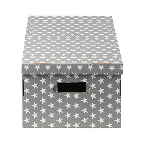 COMPACTOR Set di 2 Scatole in cartone ondulato, Con maniglie, Impilabili, Grigio, Stelle, 40 x 31 x H.21 cm, RAN7054