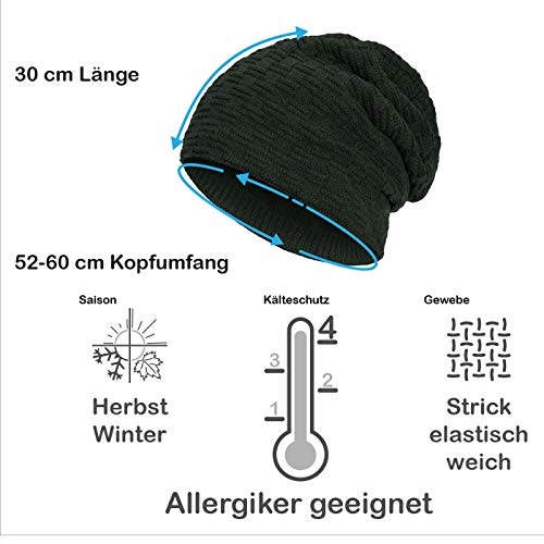 Compagno caldo berretto foderato berretto invernale beanie modello intessuto con soffice fodera interna in pile, Colore:Oliva