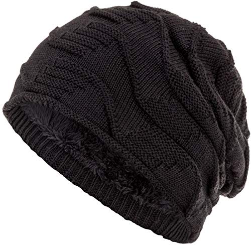 Compagno Caldo Berretto Foderato Berretto Invernale Beanie Design in Maglia Grezza, Colore:Nero