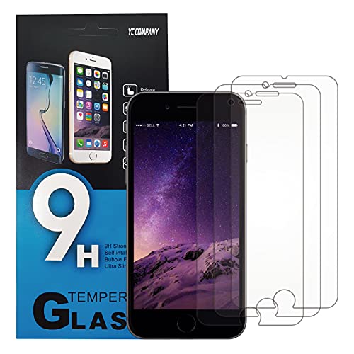 YC COMPANY - Set di 3 pellicole proteggi schermo in vetro temperato per iPhone 6, iPhone 6S, antigraffio, senza bolle d'aria, ultra resistente (0,33 mm HD ultra trasparente), durezza 9H