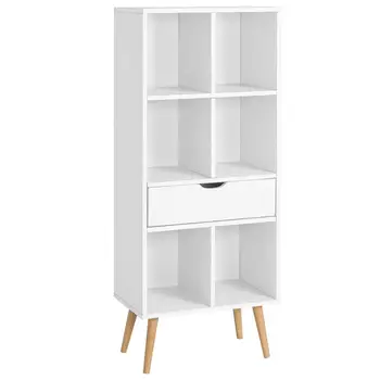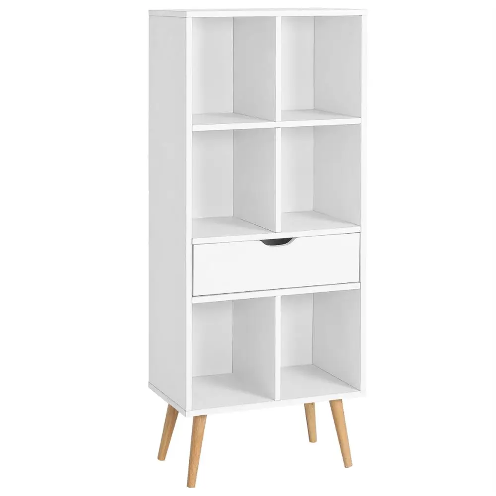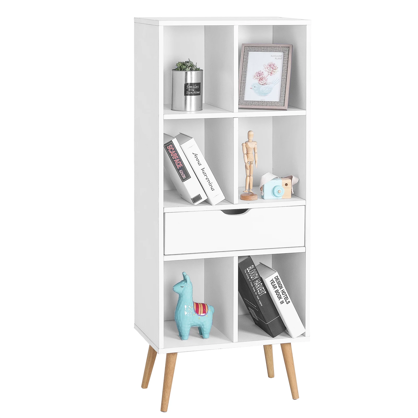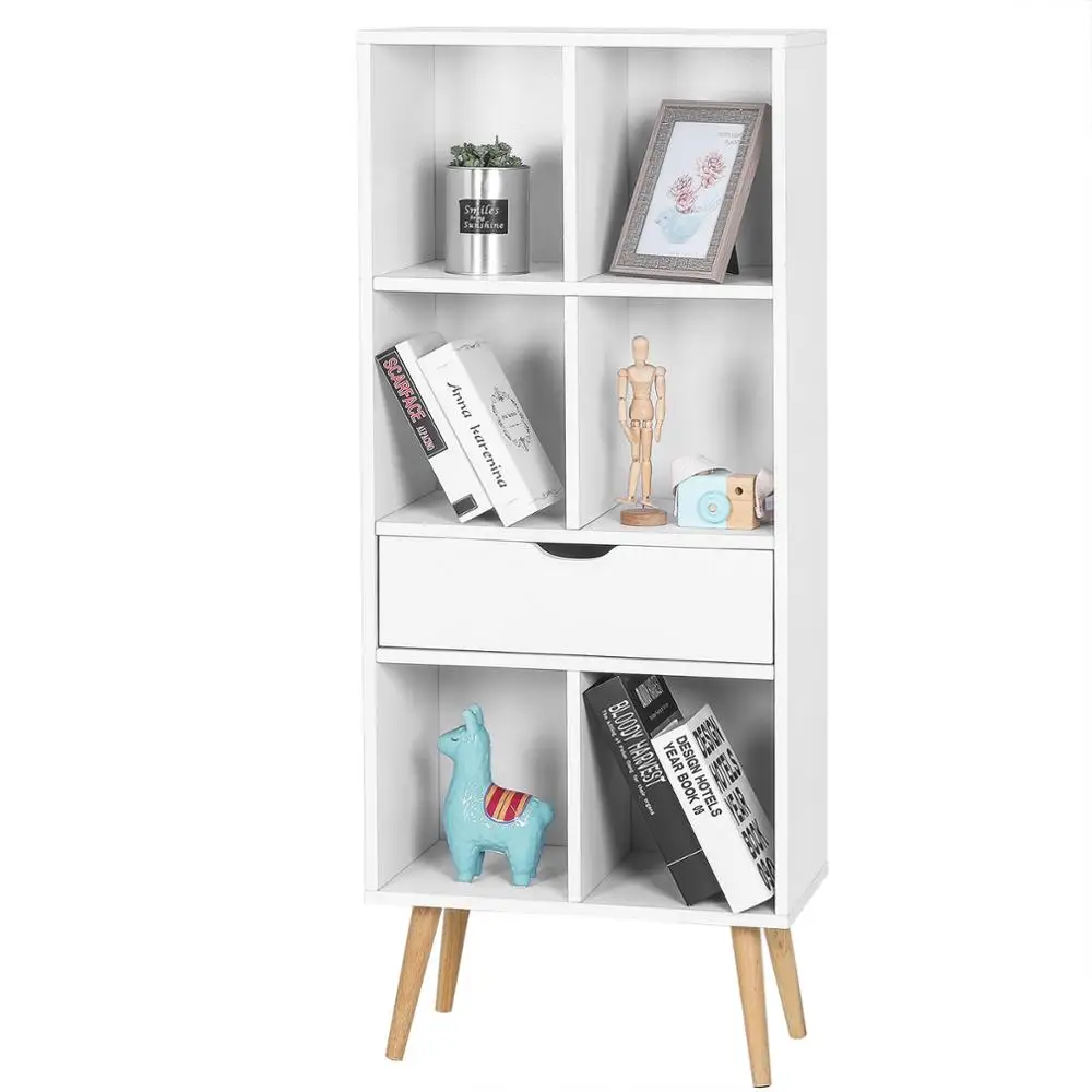 1PC 6 Compartments White Bookshelf Bookcase Room Divider File Shelves 50x29.5x120cm Standing Storage Shelf with Drawer Legs