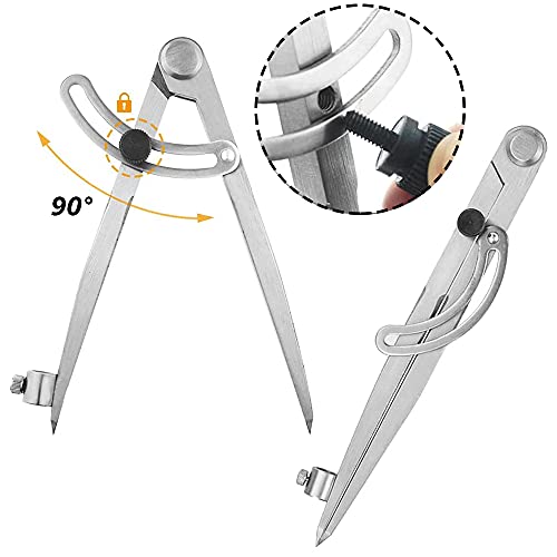 ★ Design Ergonomico ★ La bussola professionale per la lavorazione del legno ha una vite di regolazione per una regolazione fine, può regolare la larghezza tra i piedi piatti. fai facilmente per ripetere misurazioni, disegnare cerchi, disegnare archi, che non salteranno o sfuggiranno al tuo controllo.