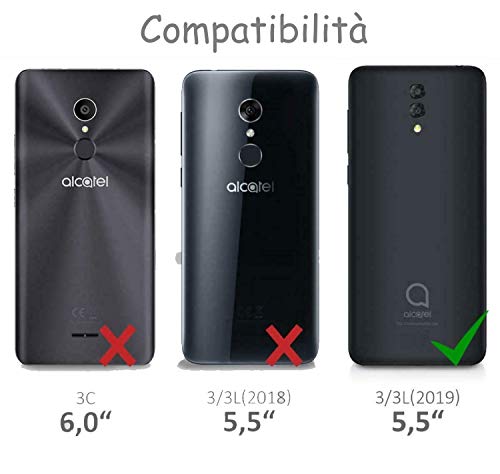 Compatibile per ALCATEL 3 (2019)/ 3L (2019)/ 5034D / 5053Y, 5053D 5053K / 5039d Custodia Cover Case protezione Slim Gel Silicone Morbida TPU + Pellicola Vetro TEMPERATO 9H Antiurto (nero)