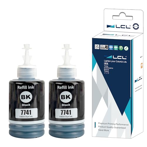 LCL Compatibile Bottiglie d'inchiostro da stampa Sostituzione per Epson 774 T7741 T774120 ET-3600 ET-4550 ET-16500 L1455 L605 L655 WorkForce M100 M105 M200 M205 (2-Pack Nero Pigmento 140ML)