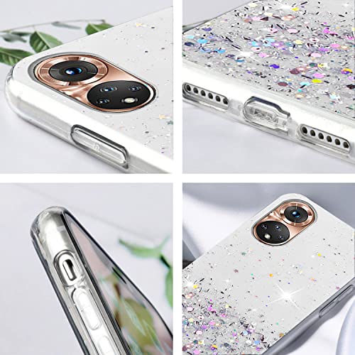 Compatibile con Cover Honor 50 Trasparente Glitter, Bling Bling Custodia Honor 50 Cover Huawei Nova 9 Case Silicone Sottile Morbida Rosa (Honor 50, Trasparente)