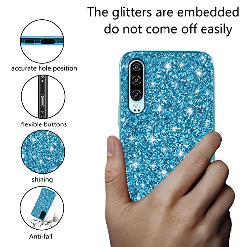 Compatibile con Cover Huawei P30 Glitter Silicone Antiurto, Custodia Huawei P30 TPU Sottile Brillantini Protezione Case(blu)