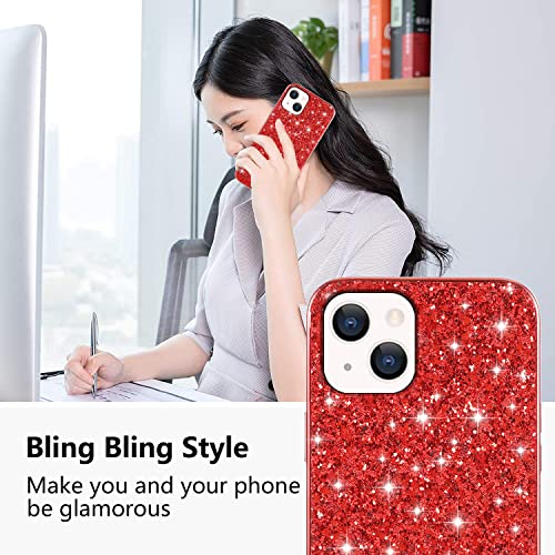 Compatibile con Cover iPhone 14 Plus Glitter Silicone Antiurto, Custodia iPhone 14 Plus TPU Sottile Brillantini Protezione Case (rosso)