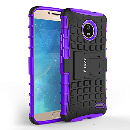 J&D Compatibile per Cover Moto E4, [Cavalletto] [Protezione Robusta] [Doppio Strato] Sottile Adatta Ibrida Antiurta Protettiva Custodia per Motorola Moto E4 - [Non per Moto E4 Plus] - Viola