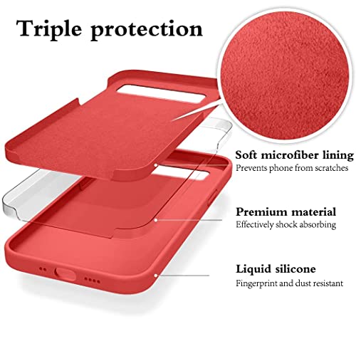 Compatibile con Cover Pixel 7, Custodia Google Pixel 7 Silicone, Full Body Protettiva Slim Antiurto Case Nera Rosa Accessori (Rosso)