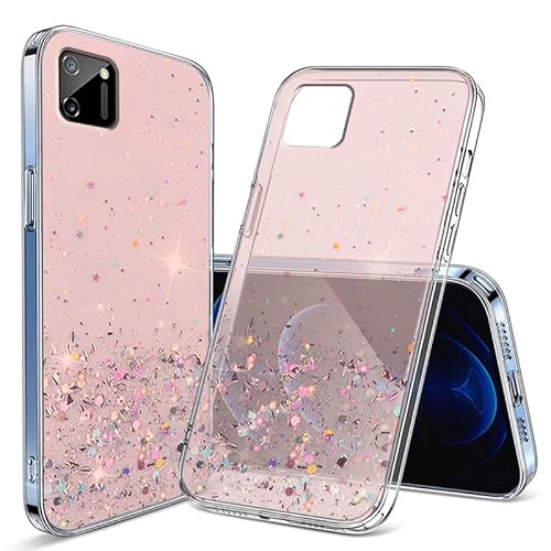 Compatibile con Cover Realme C11 2021 Trasparente, Realme C11 2021 Cover Glitter, Custodia Realme C11 2021 Silicone Antiurto Nero (Realme C11 2021, Rosa)
