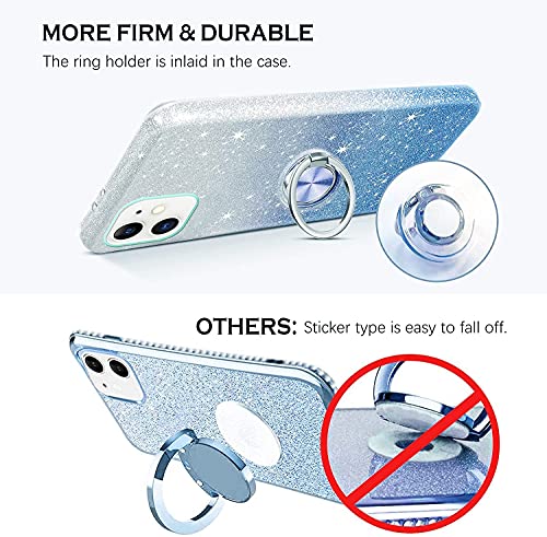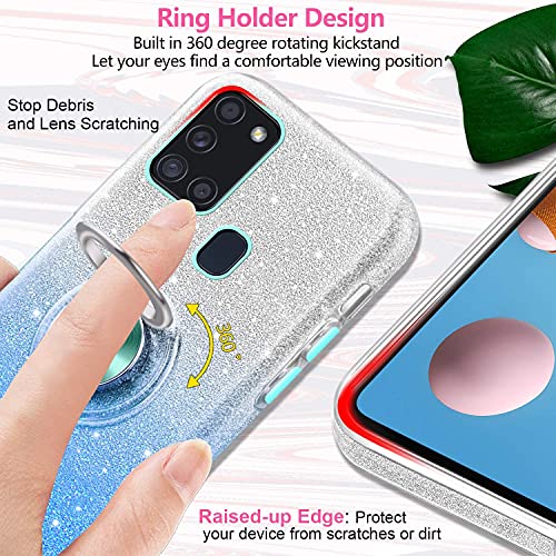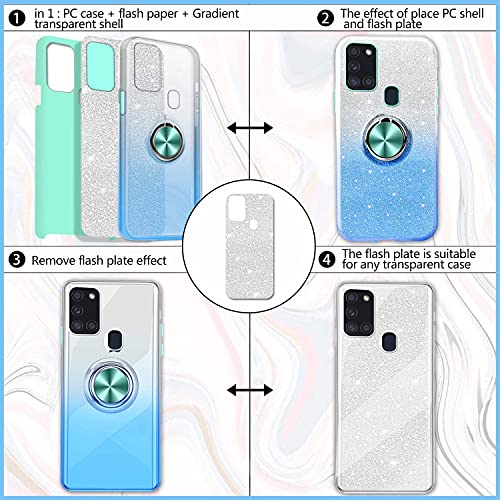 Compatibile con la cover Redmi Note 9S, custodia per telefono scintillante 3 in 1, anello girevole a 360° per supporti magnetici auto, adatta alla custodia Redmi Note 9S-Blu
