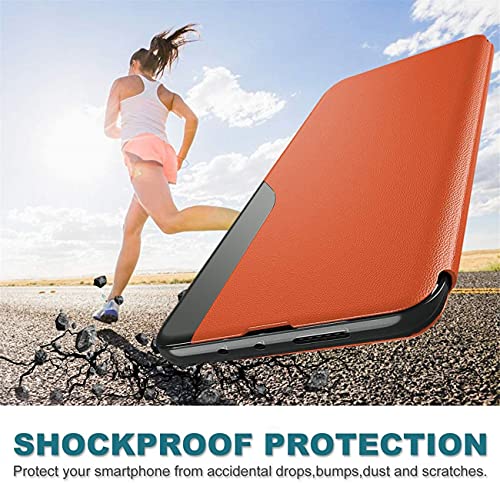 Compatibile con Cover Redmi Note 8T Rigida in Pelle, Cover a Libro Xiaomi Redmi Note 8T Cover Flip, Custodia Redmi Note 8T Case Pelle (Arancia, Xiaomi Redmi Note 8T)