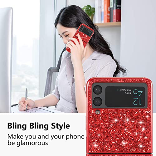 Compatibile con Cover Samsung Z Flip 3 5G, Custodia Samsung Galaxy Z Flip 3 Silicone, 3 En 1 Glitte Protettiva Slim Antiurto Case Protettiva Nera Rosa Accessori (rosso, Samsung Z Flip 3)